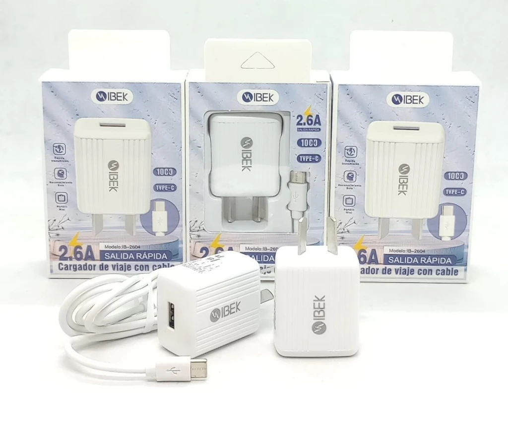 Cargador Tipo-c Rápido De Pared 220v+cable Usb Ibek Boxed Color Blanco.
